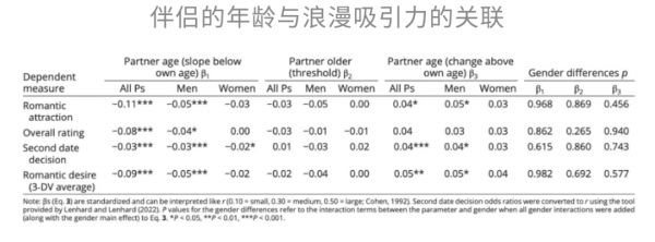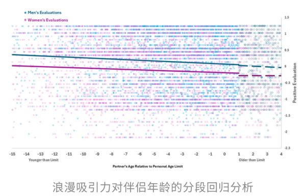 但此前,一项发表于PNAS的大型真实约会研究[2],却给这条「祖传经验」来了个正面冲击。研究发现,在真正面对面互动的情境中,无论男女,人们反而更容易对比自己年轻的对象产生兴趣。而且,那些在嘴上说得斩钉截铁的年龄界限,比如「我最多只能接受45岁」,在真实吸引力评估中几乎不起作用。