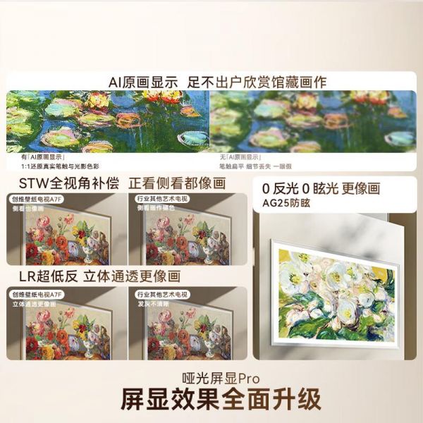 综合来看,创维壁纸电视A7F不仅是一台电视,更是一件艺术品,它将极致的视觉体验与优雅的家居风格完美结合,是提升生活品质的理想选择。