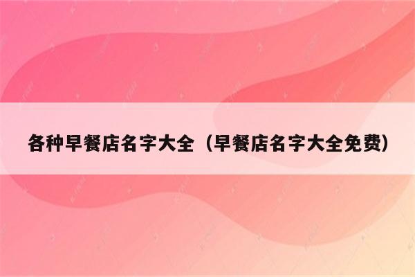 今天给各位分享各种早餐店名字大全的知识,其中也会对早餐店名字大全免费进行解释,如果能碰巧解决你现在面临的问题,别忘了关注本站,现在开始吧!